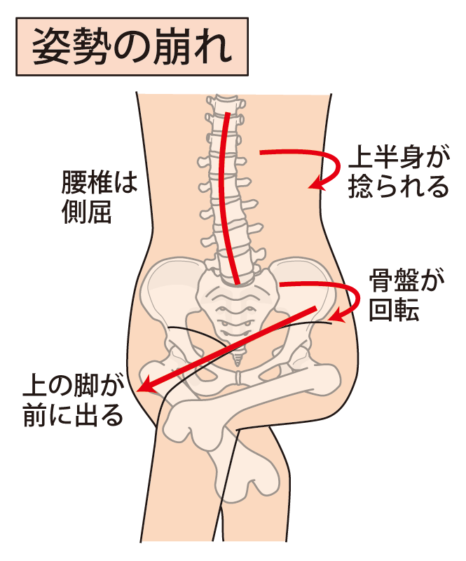 この土台が傾くと、その上にある背骨もバランスを崩します。
