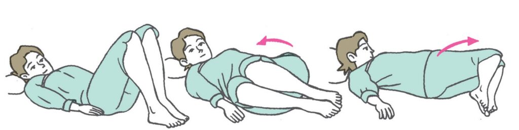 1.膝を左右にパタパタ揺らす(10〜20回)