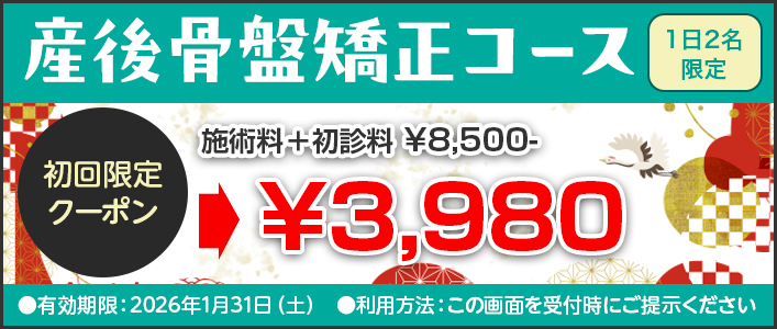 産後の女性には、まず開いた骨盤をもとに戻す骨盤矯正をおススメします。