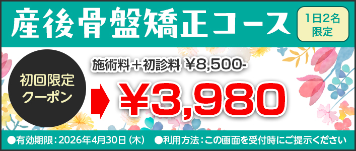 出産後は骨盤の歪みが出やすく、様々な不調が出やすいからです。